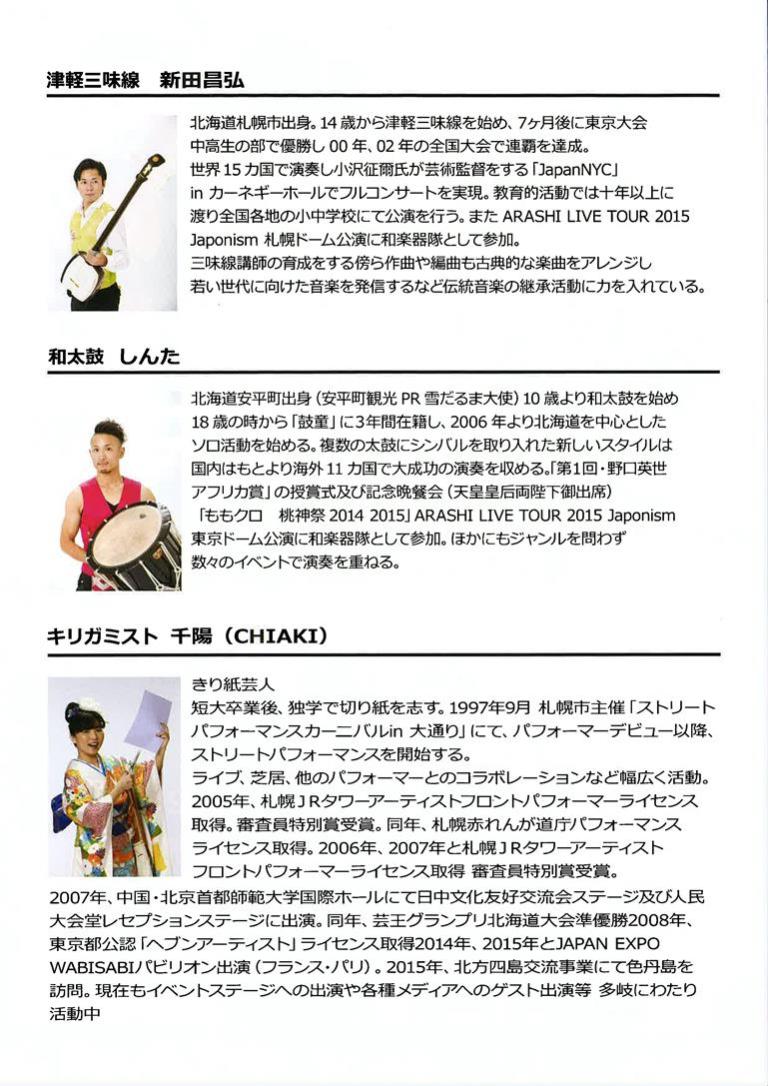 出演/しんた(和太鼓)、新田昌弘(津軽三味線)、千陽(キリガミスト)