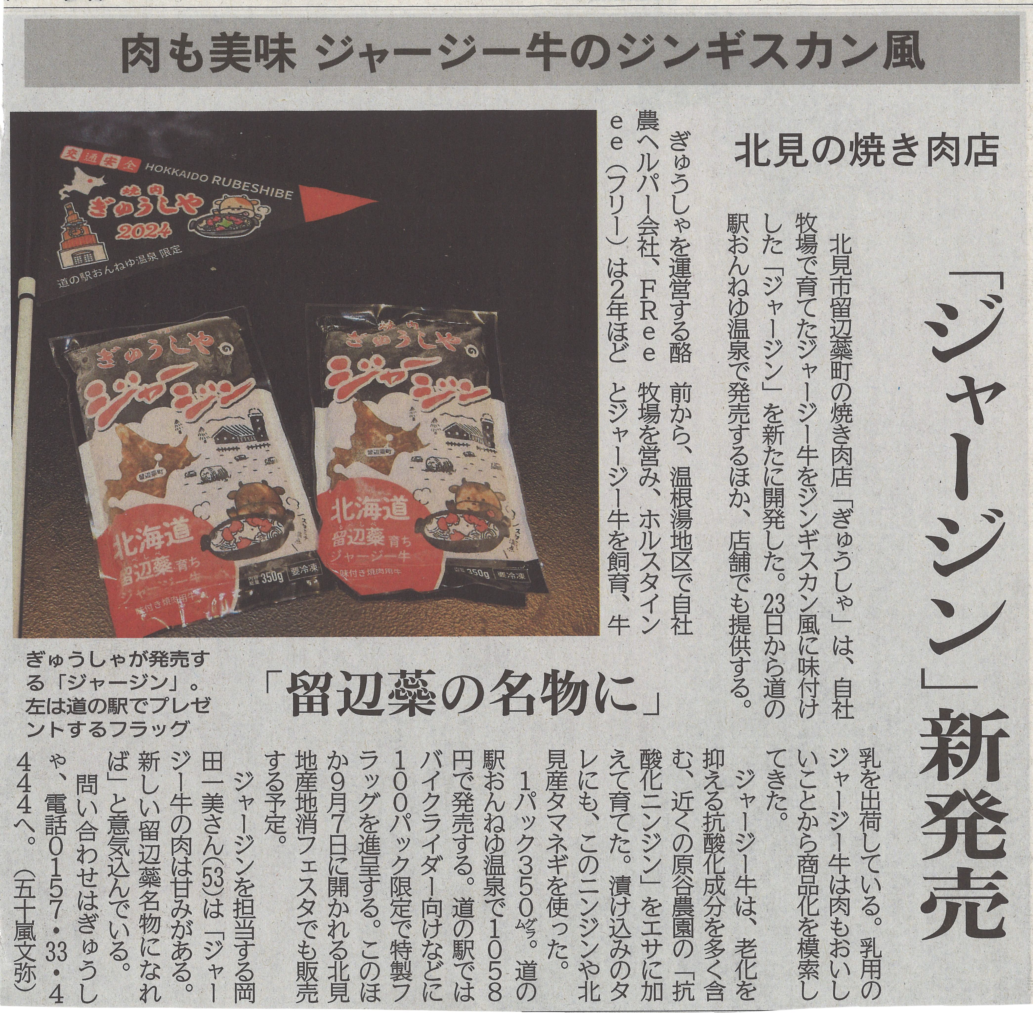 株式会社FReeeeが運営する北見市留辺蘂町の焼肉店「ぎゅうしゃ」さんが自社牧場で育てたジャージー牛をジンギスカン風に味付けした「ジャージン」を新たに開発!!